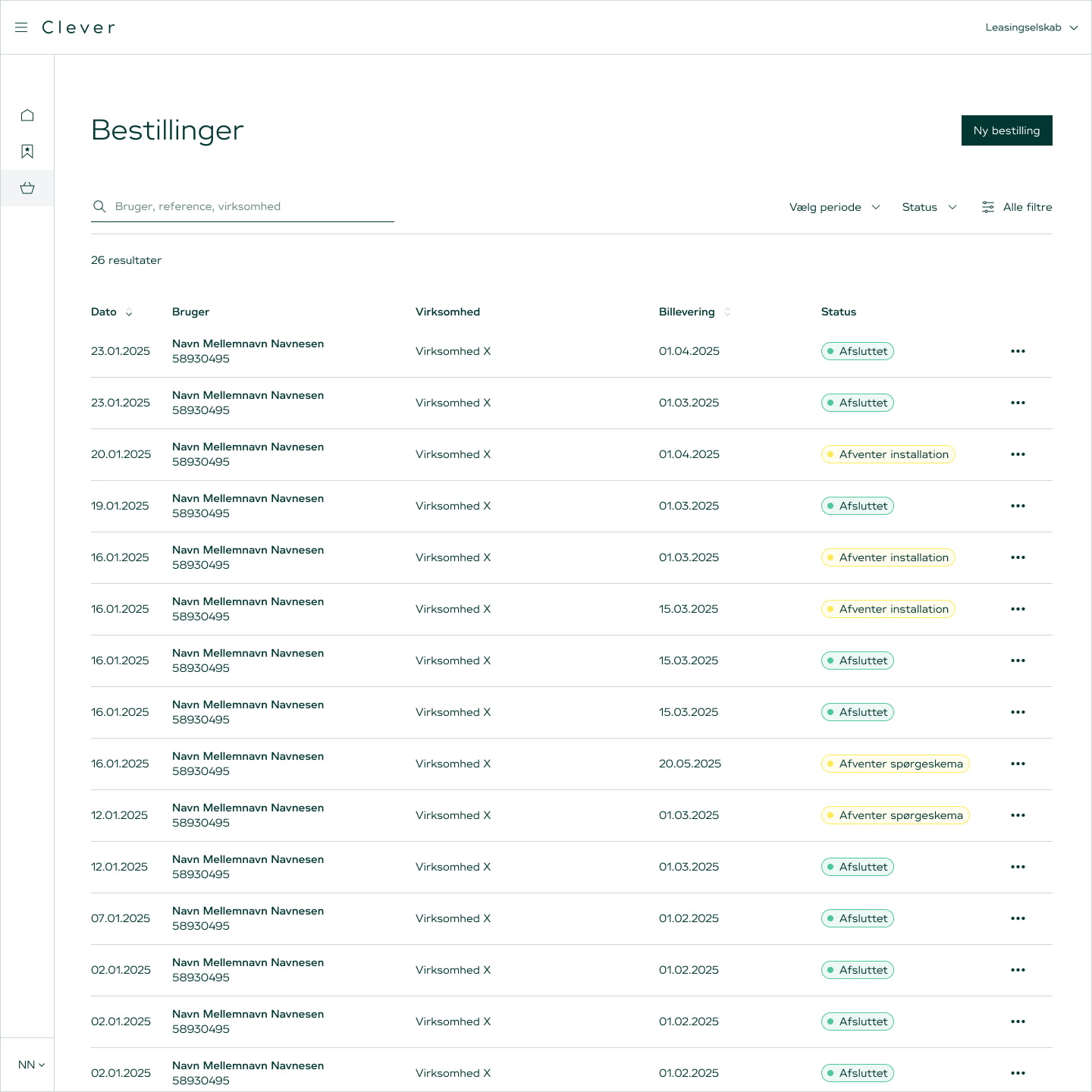 Få nemt overblikket over alle bestillinger, de vigtigste detaljer og deres status.