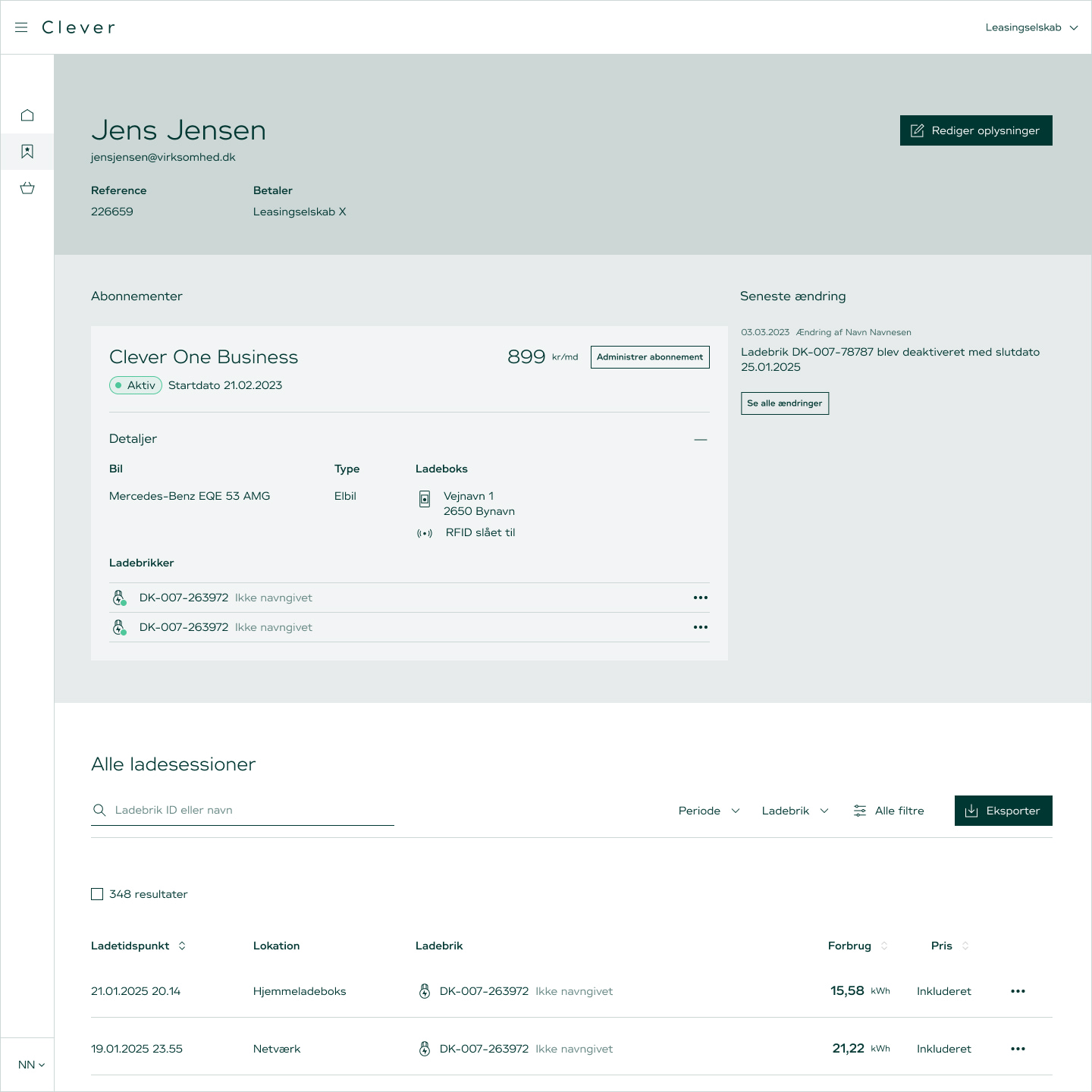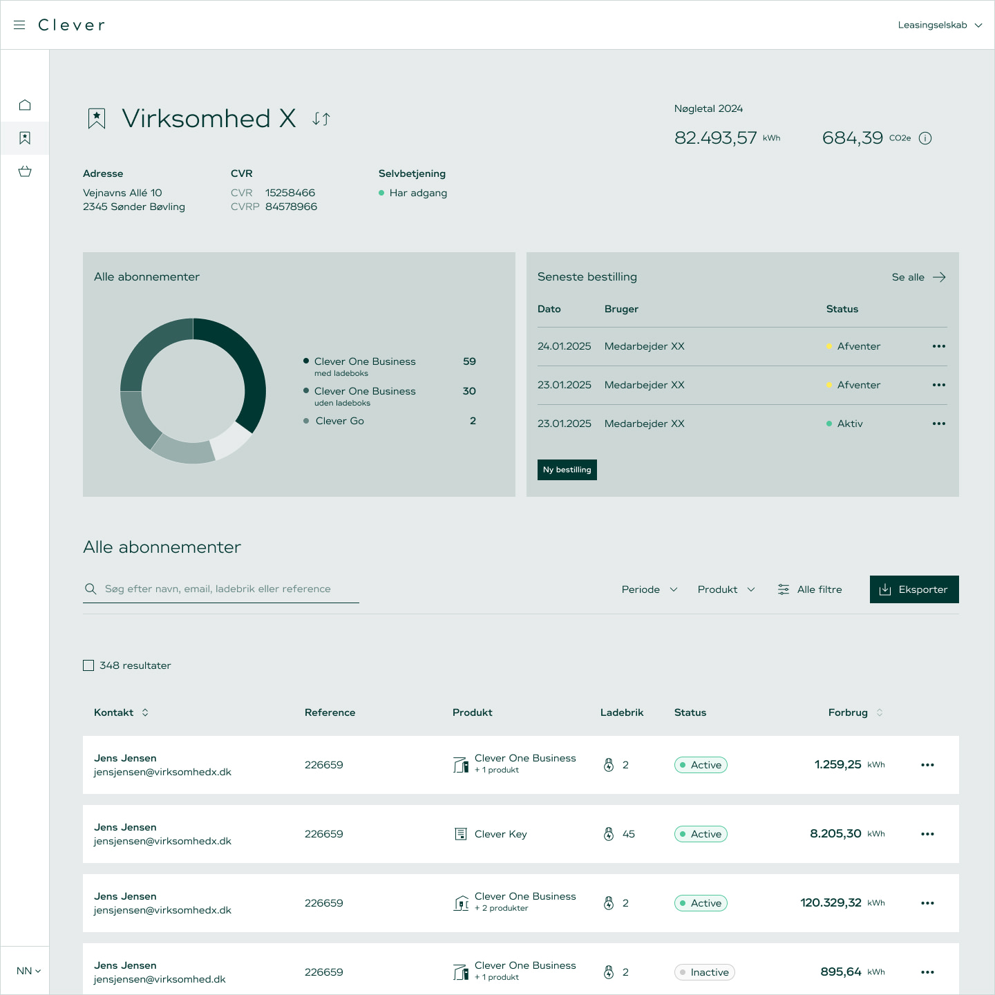 Få et bedre overblik over kunderne, deres ladeadfærd og bestil nemt ladebrikker eller opsig abonnement.