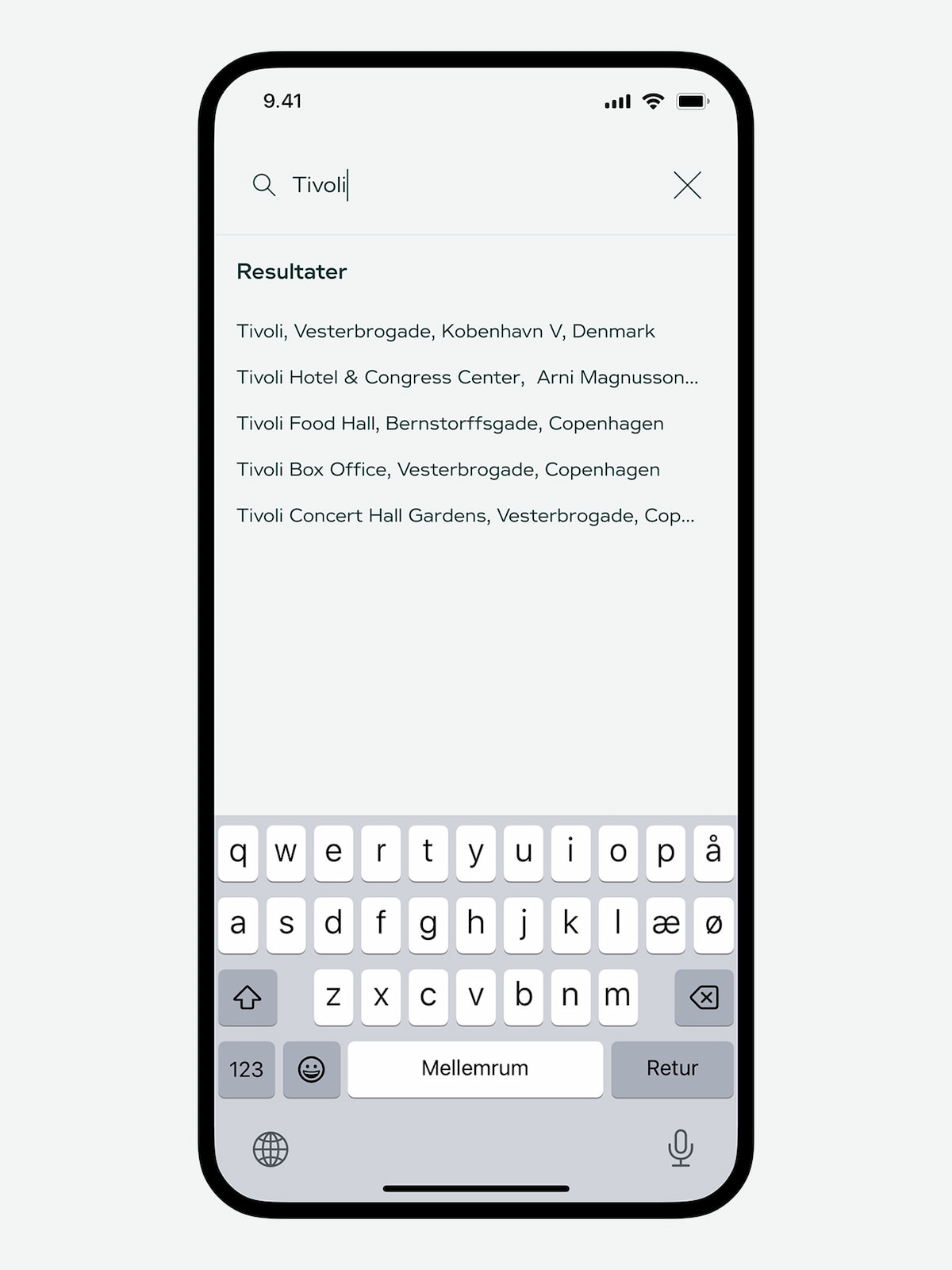 På ladekortet kan du søge efter en bestemt lokation, det kan både være en adresse, en hel by eller et interessepunkt som fx Tivoli.