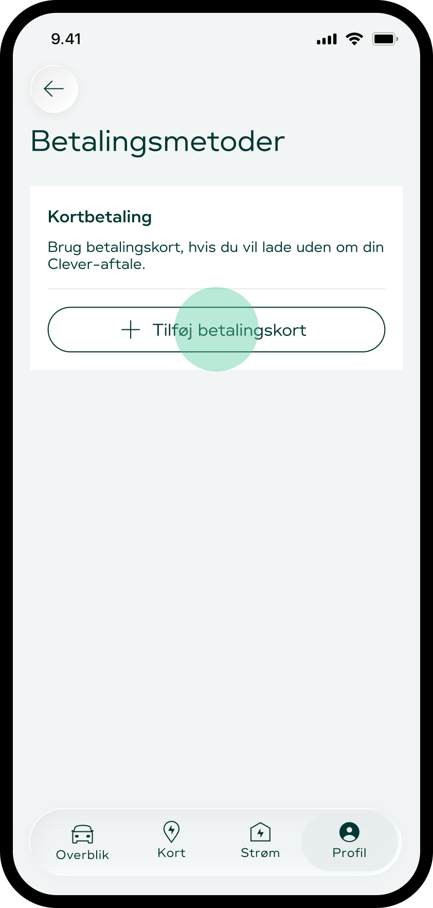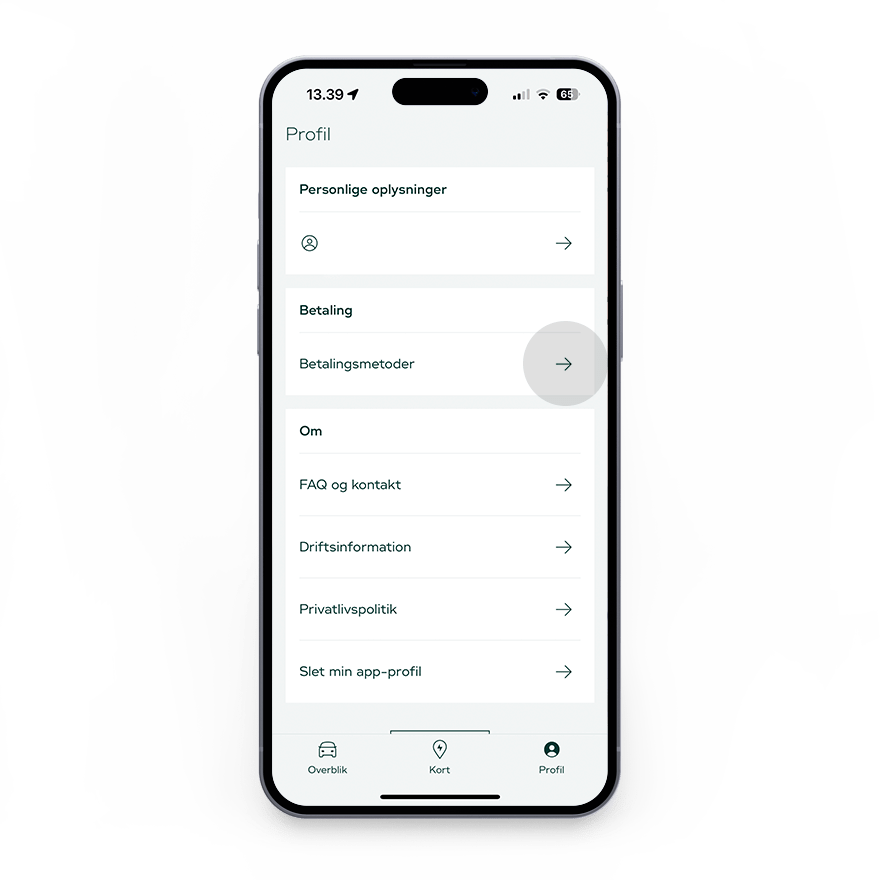 Skal du indimellem selv betale for udgifterne til opladning fx i forbindelse med ferie, så kan du nemt tilføje flere betalingskort i din Clever-app.