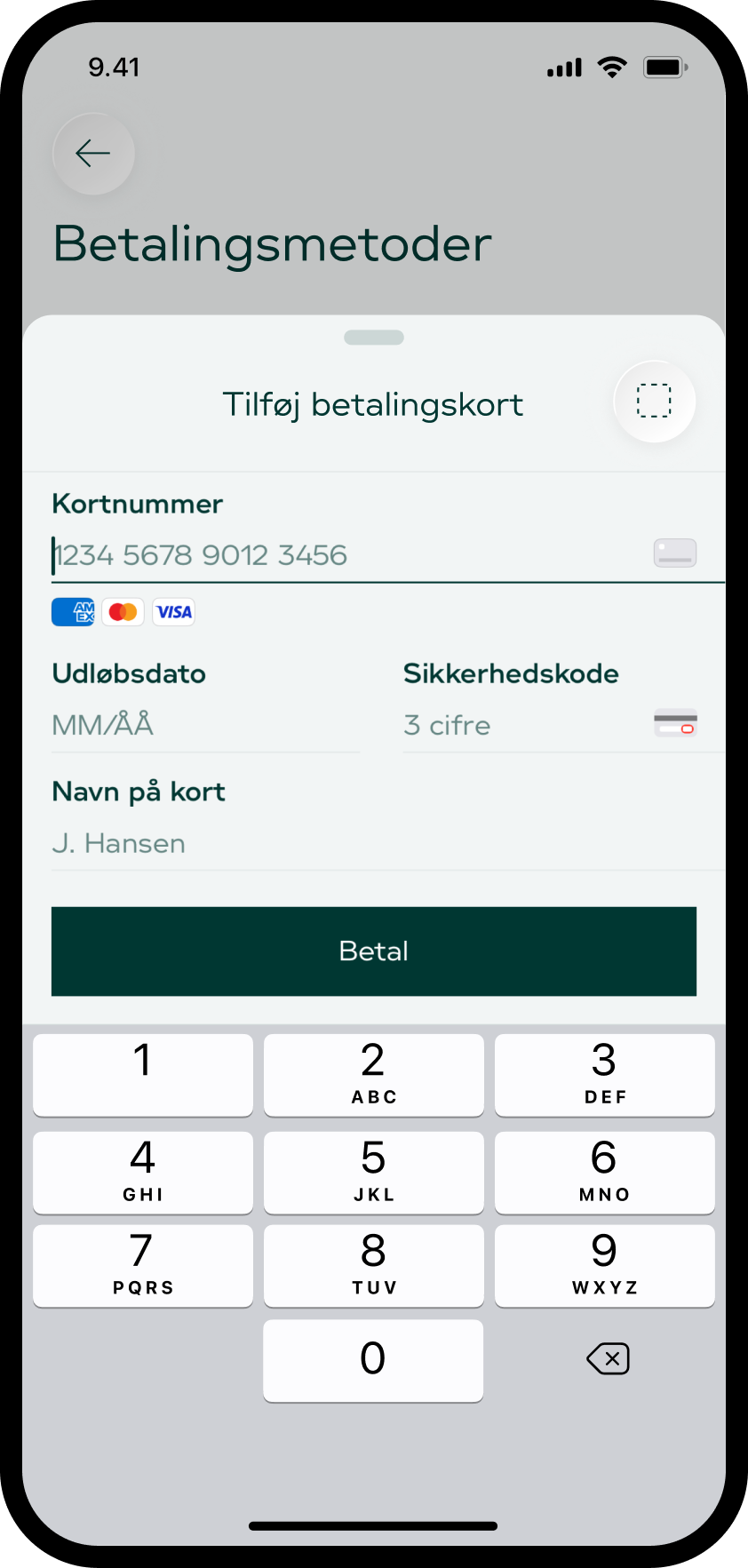 2. Tilføj nyt betalingskort