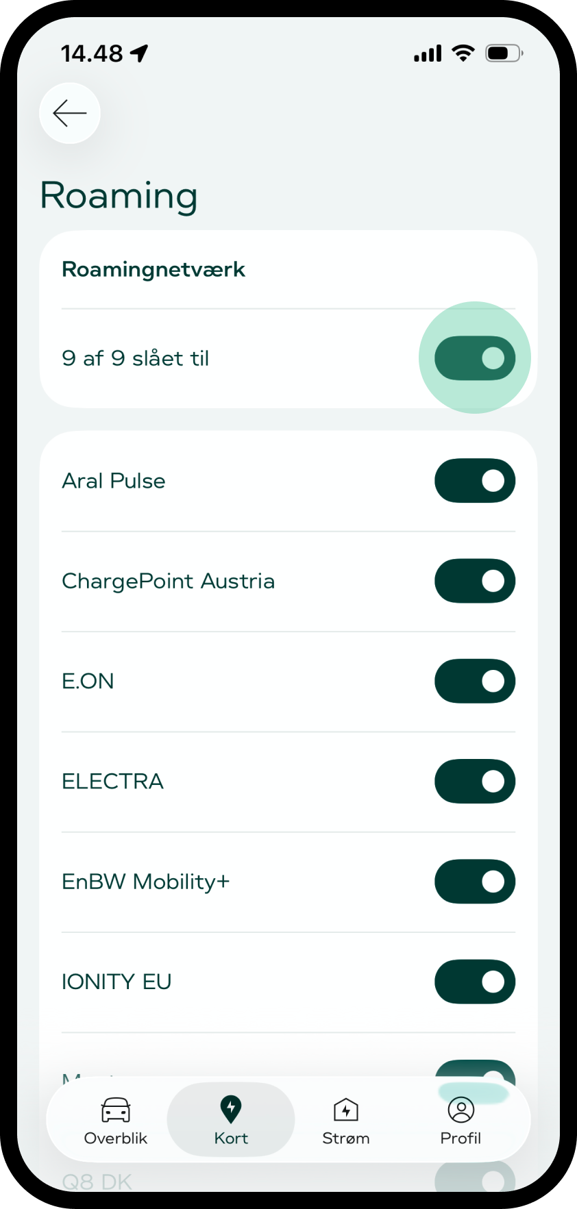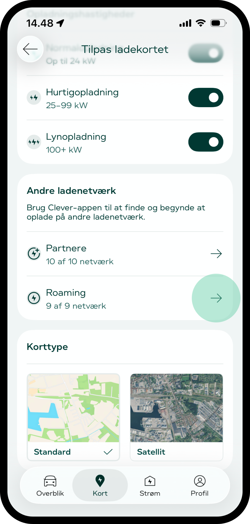 Vælg 'Roaming' under sektionen 'Andre ladenetværk'