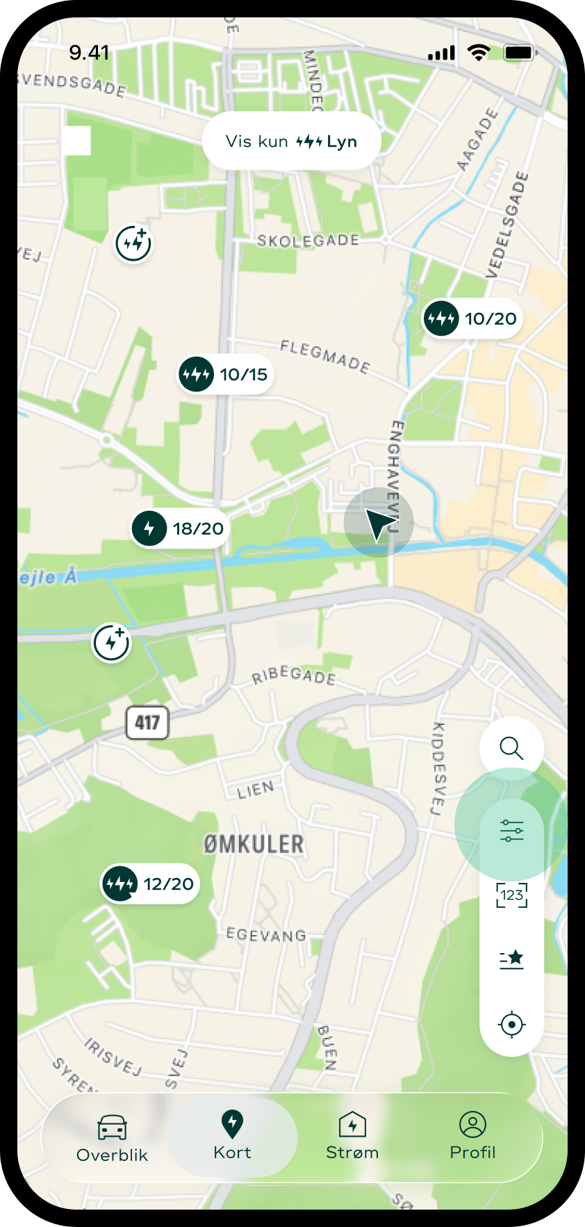 Når du er i appens kortvisning: Tryk på tilpasningsikonet i højre side.