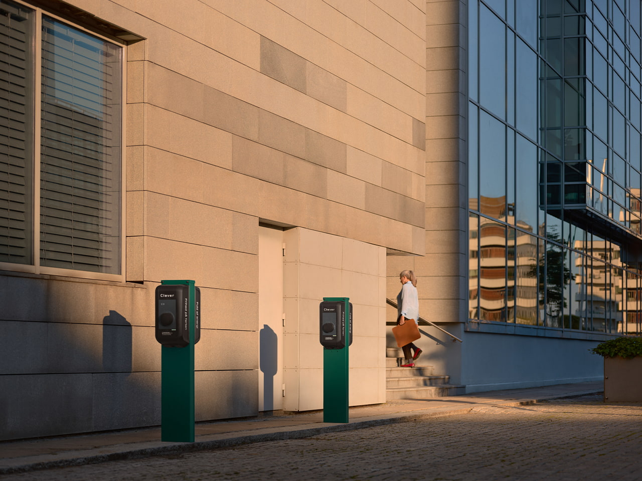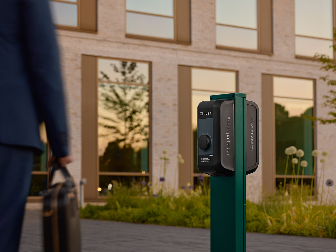 Med ladeudstyr installeret på arbejdspladsen kan medarbejdere og gæster nemt lade bilen i løbet af arbejdsdagen. Det er nemt at komme i gang – og Clever står for det hele fra start til slut.